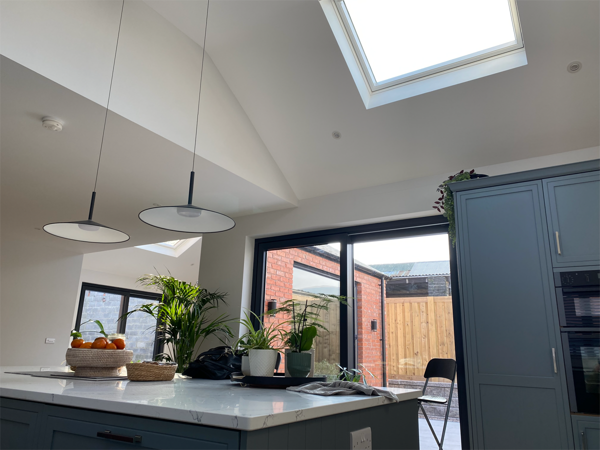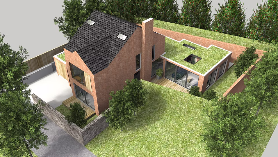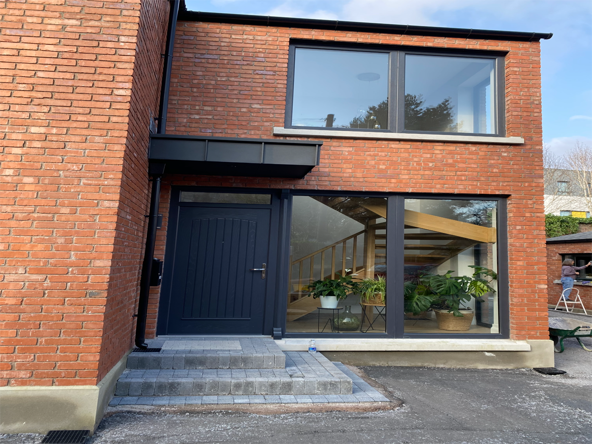 A challenging scheme on an elevated site in a tense suburban setting in west Belfast. The design has been carefully considered to maximise the use of existing topography and geology of the site to offer privacy and a split -level arrangement. The split level concept is also a reference to the design conscious Clients to reflect their passion for mid-century interiors. The materials, massing, scale and finishes reference red brick Victorian houses of the surrounding area.