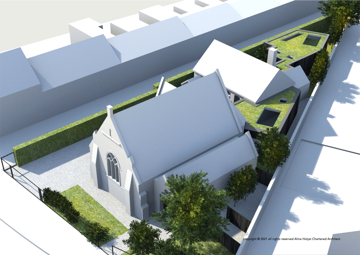 Conversion of a Church Hall located within the curtilage of a Grade B listed Church in Rostrevor. The proposed work aims to develop the Hall building to improve its appearance, its utility and flexibility, its thermal performance and reduce its carbon footprint. The overall approach aims to improve the contribution the property makes to its setting without degrading its significance. Historical features which contribute to the significance, particularly the Gothic windows, internal original features will be subject to sympathetic repair/refurbishment.