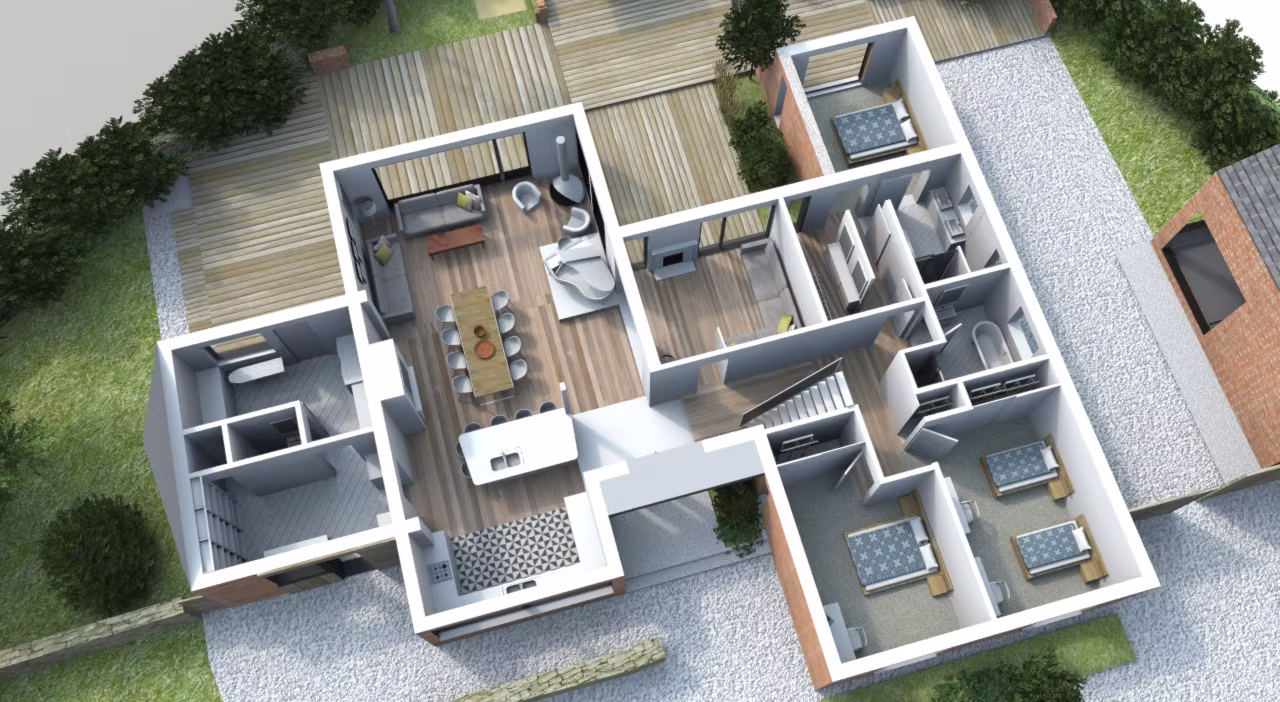 The house offers much-needed space for a growing modern family with carefully designated zones. Living- in and living -out is cohesively combined with the safe kids' zone, parents private zone with the B&Q, quest zone, landscaped patio areas at the rear & expansive front garden. A purposefully designed workshop for the Client's collection of classic cars sits beside the harmony of the existing dwelling.