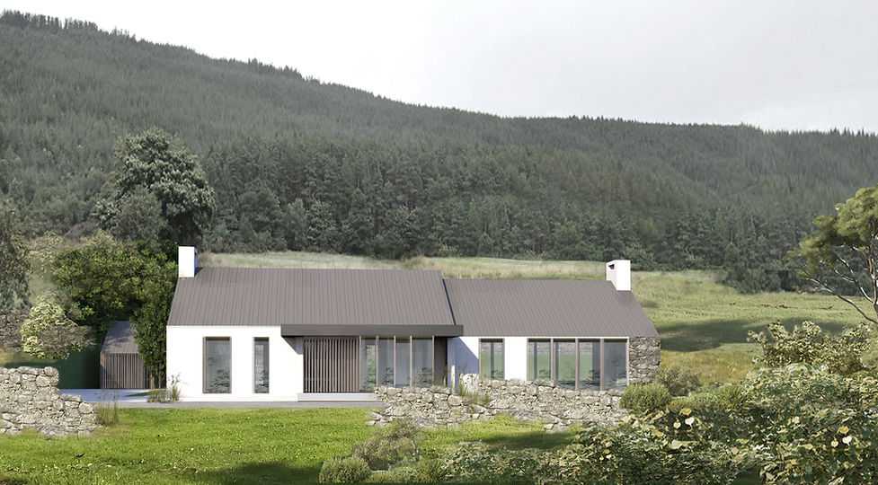 This refurbishment and transformative extension offers scenic, elevated views of the majestic Mourne Mountains and the surrounding countryside. Area renowned for its panoramic landscapes, close proximity to the North Sea, and sweeping glimpses of Carlingford Lough, creating a striking coastal and mountain setting of exceptional natural beauty.