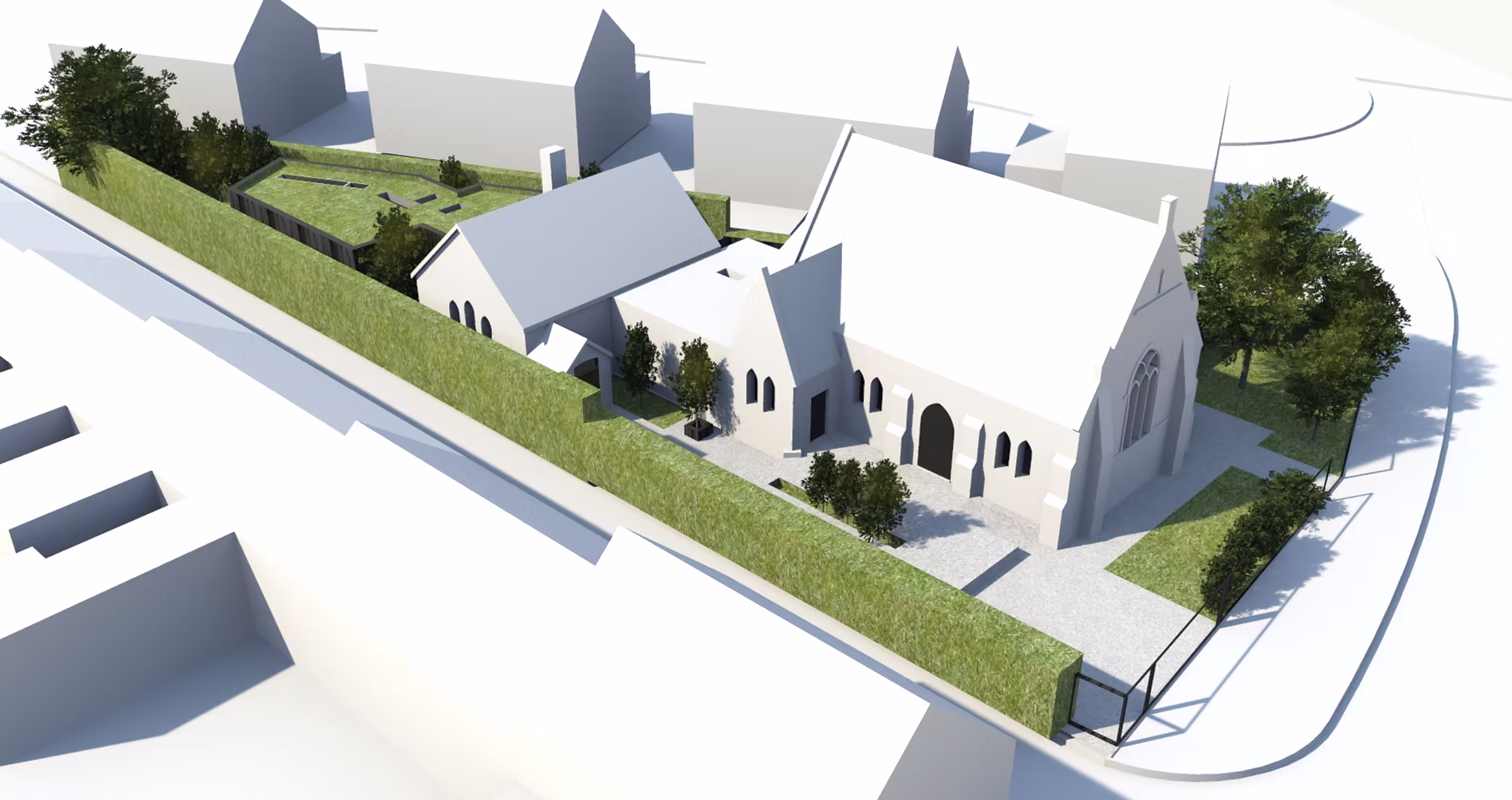 Conversion of a Church Hall located within the curtilage of a Grade B listed Church in Rostrevor. The proposed work aims to develop the Hall building to improve its appearance, its utility and flexibility, its thermal performance and reduce its carbon footprint. The overall approach aims to improve the contribution the property makes to its setting without degrading its significance. Historical features which contribute to the significance, particularly the Gothic windows, internal original features will be subject to sympathetic repair/refurbishment.